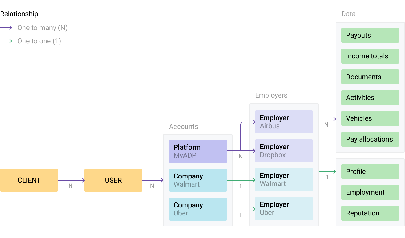 - Each company or platform, a Link item, has a unique account object created once the user successfully connects to it.