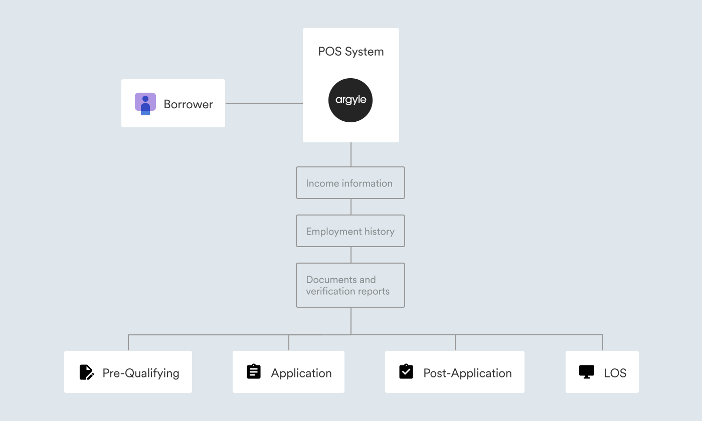 When you add Argyle to your Point of Sale (POS) system, borrowers can connect their payroll accounts by providing their login credentials. Argyle retrieves the borrowers’ income and employment data and documents, which are standardized into 160+ data fields and made available through Argyle’s data platform. With every payroll system being unique, and documents often taking borrowers weeks to find, Argyle saves time and can help in:- Pre-qualifying borrowers with up-to-date income information