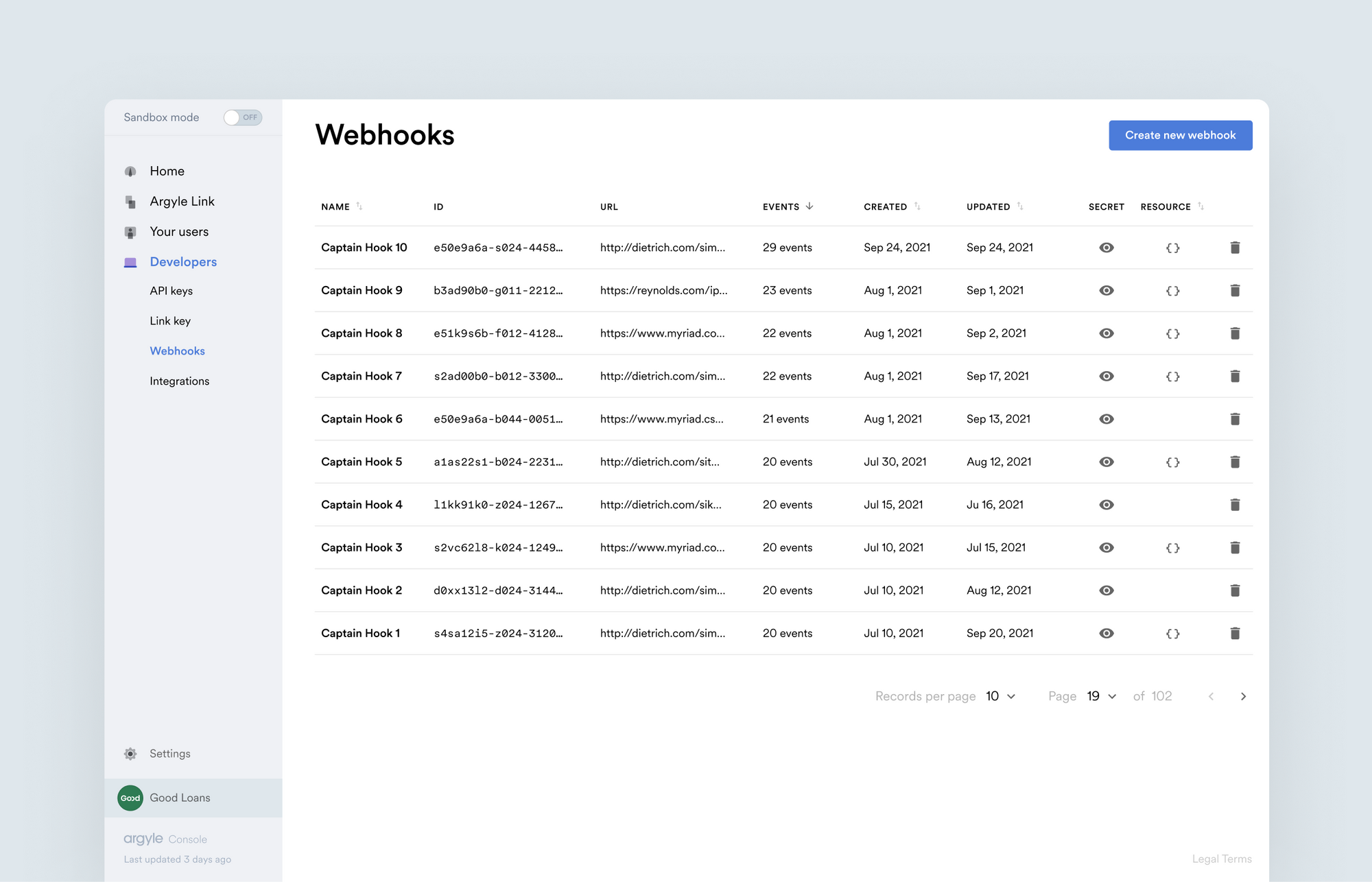 Visit the Webhooks tab in the Developers section of Console to view and manage your existing webhook subscriptions as well as create new ones.Signature validation
