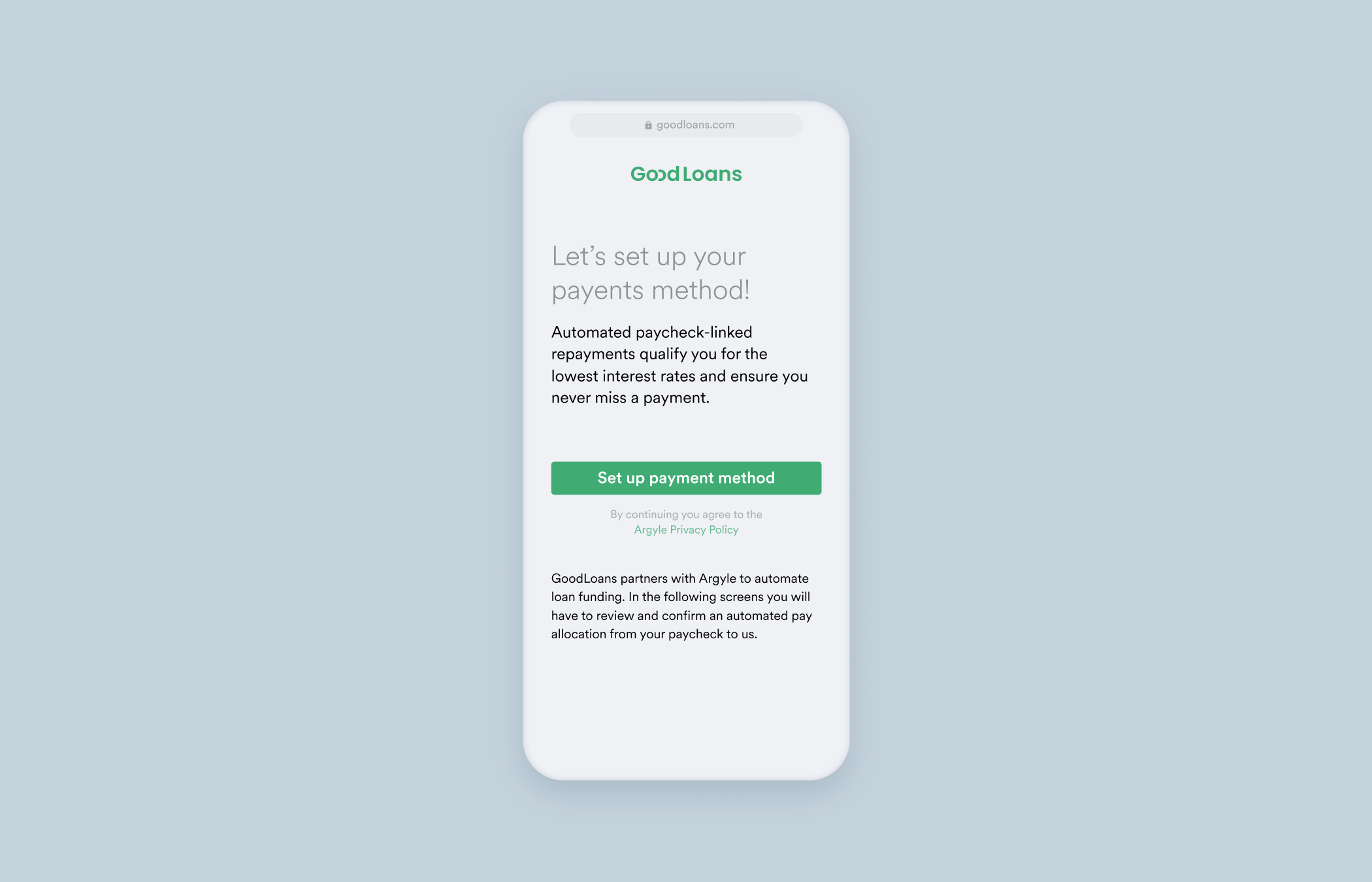 Depending on your use case (e.g. paycheck-linked lending) you may want users to initially connect their payroll accounts through Argyle Link, return to your website or application for additional steps, and then return to Argyle Link to make a direct deposit update.