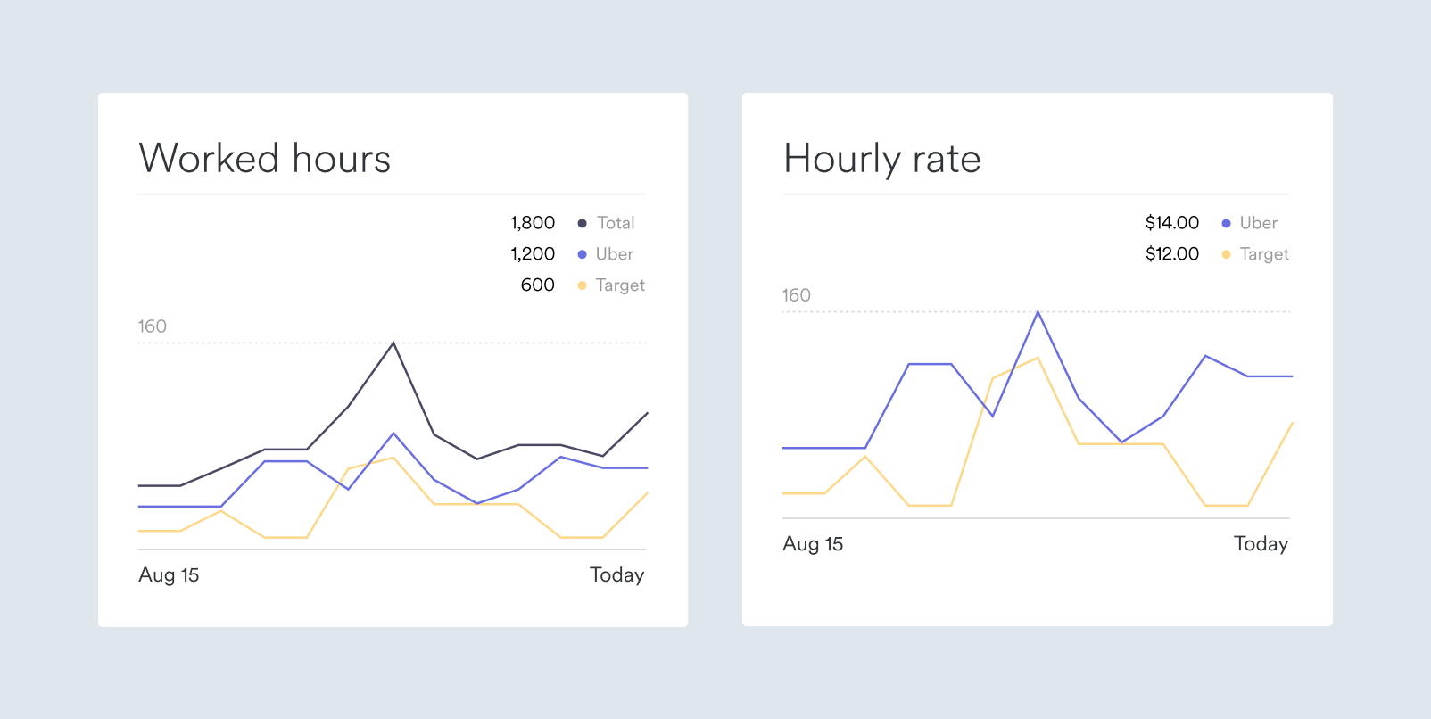 The ability to compare across work activities such as gig work, standard shift work, and freelance contracts can lead to valuable user suggestions, such as whether to take another shift with a stable hourly rate or spend that time as an independent contractor.