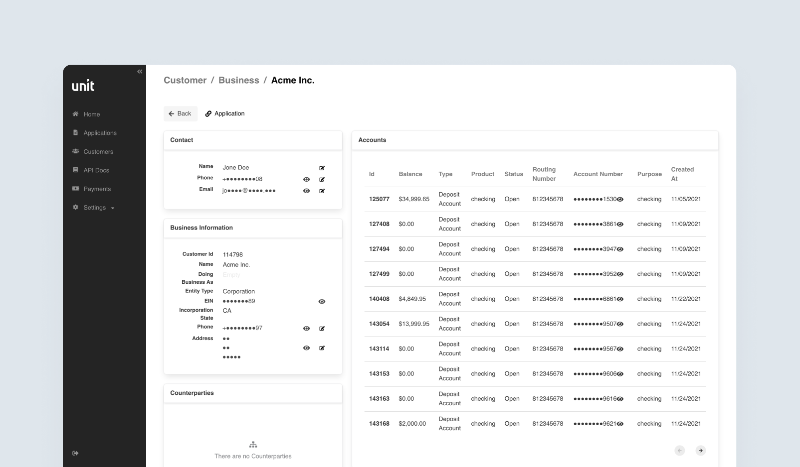 Visit the Unit Connector Github repository to clone and test the application in your local development environment, or learn more by visiting our Paycheck-linked Lending Solutions Guide.For more details, reach out to your respective Customer Success Manager, Account Executive or the Support team.