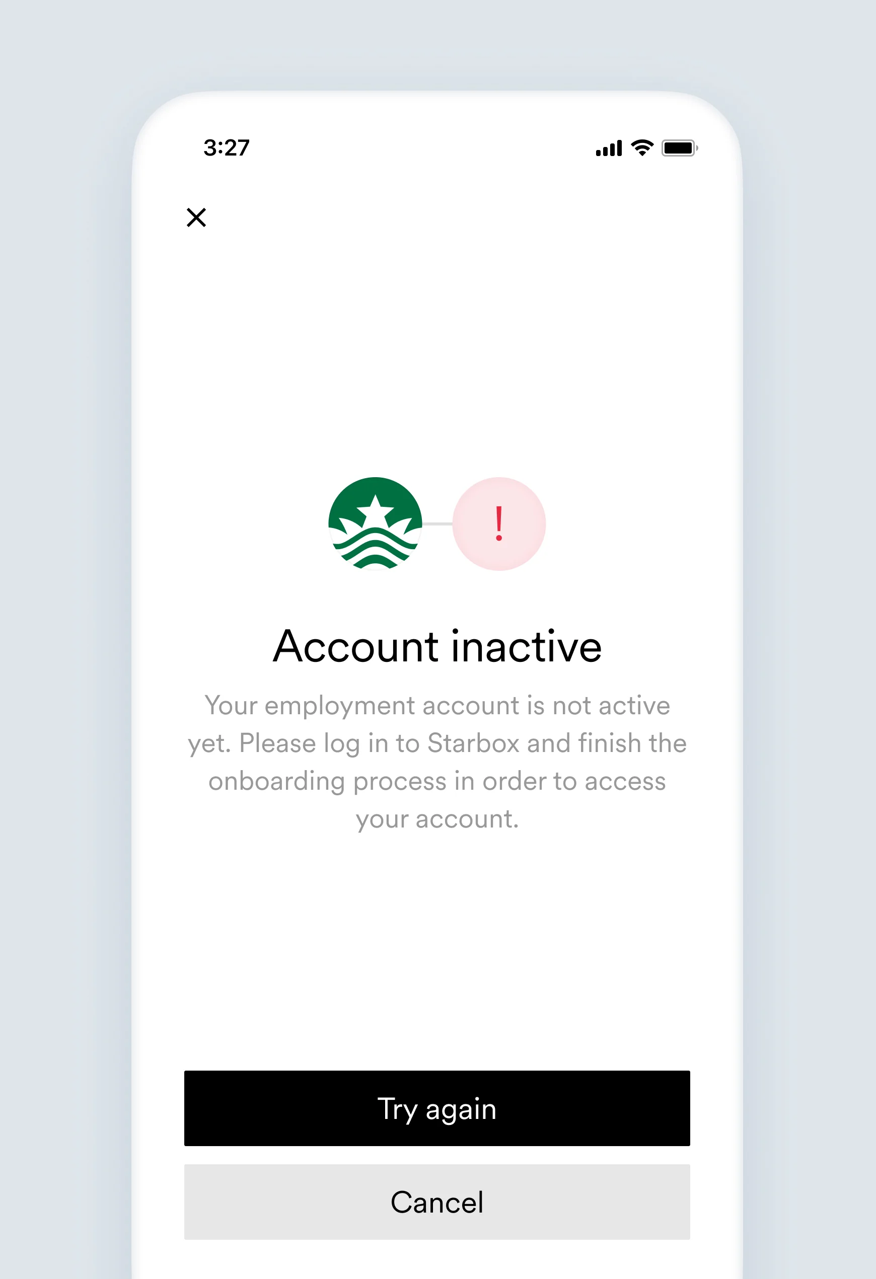 Your employment account is not active yet. Please log in to [Link item name] and finish the onboarding process in order to access your account.