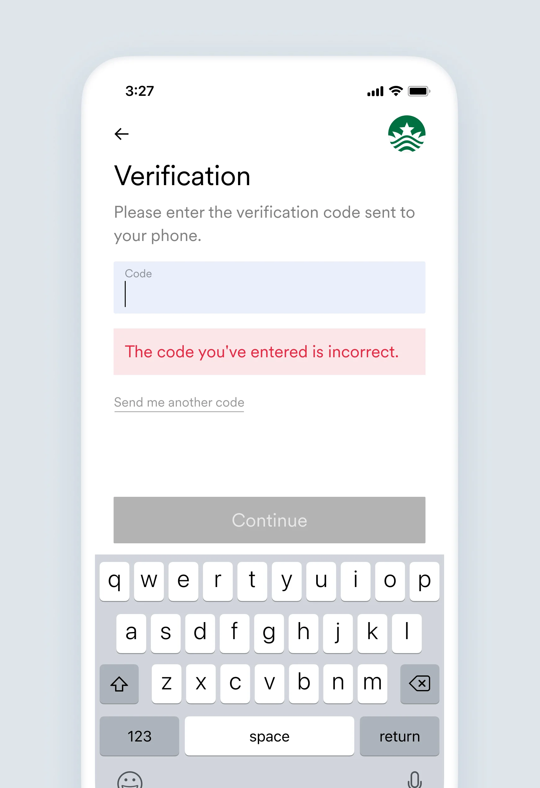 The code you’ve entered is incorrect.