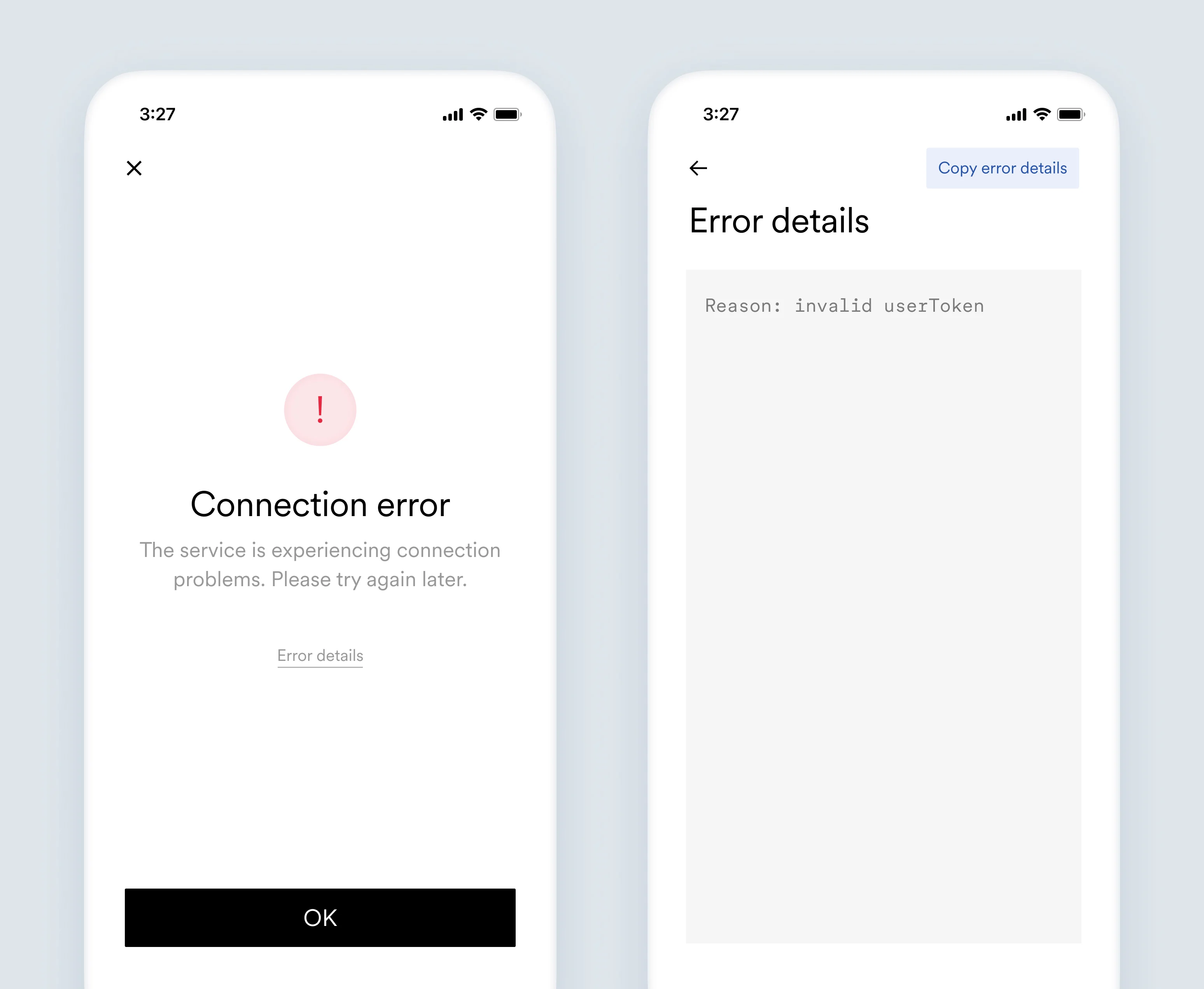 - Error details