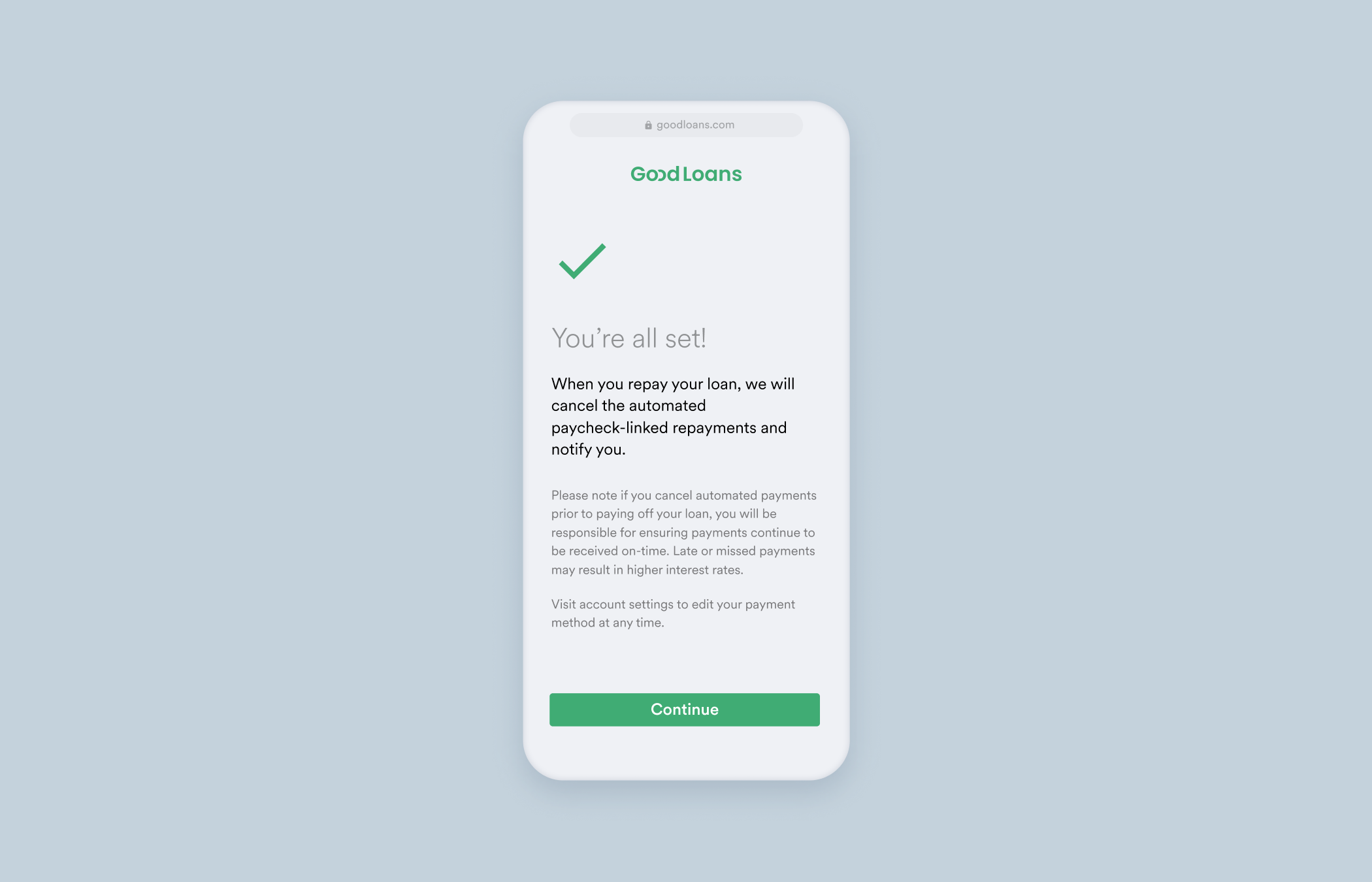 - Once approved, your borrower can seamlessly enable paycheck withholdings.