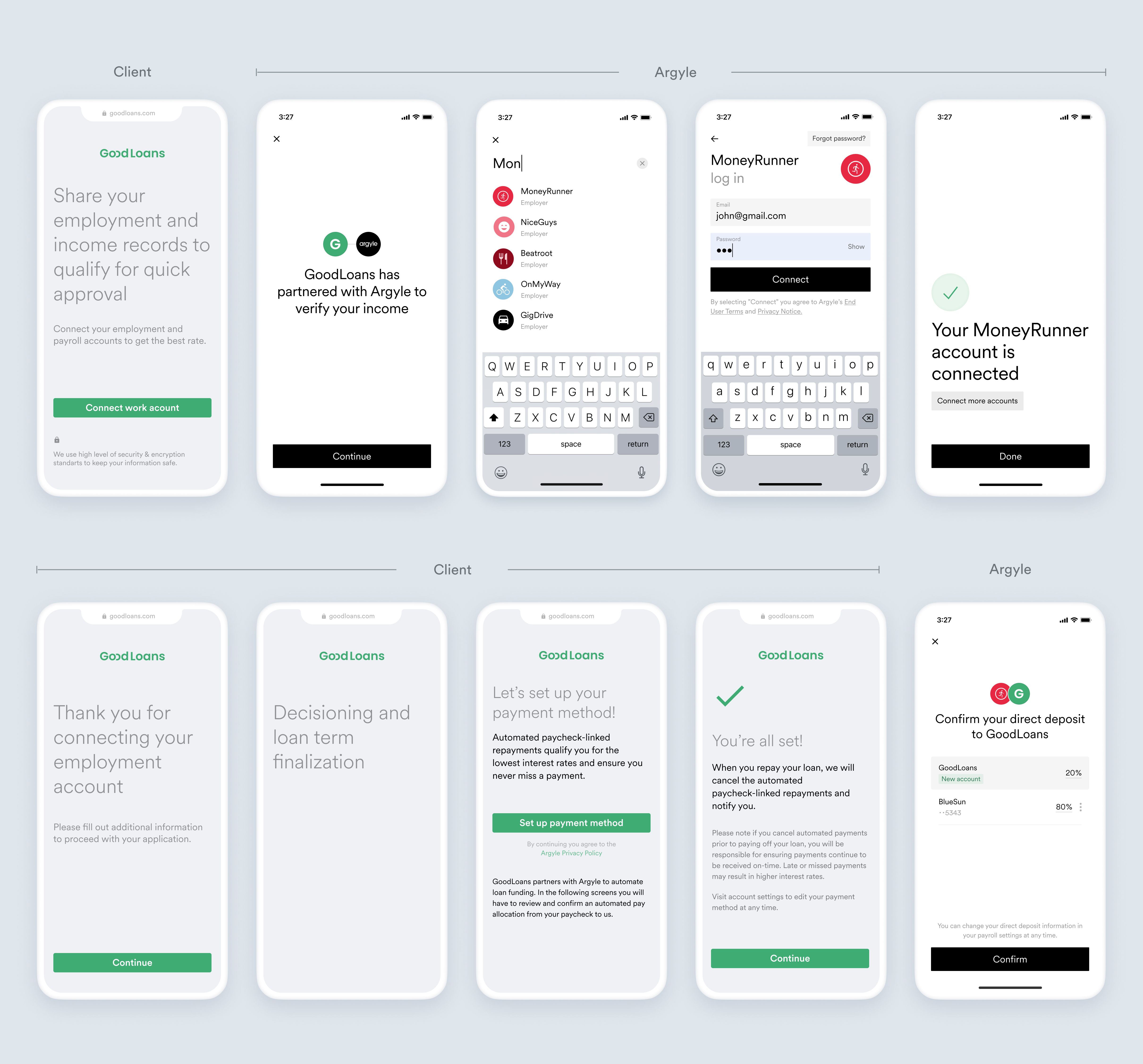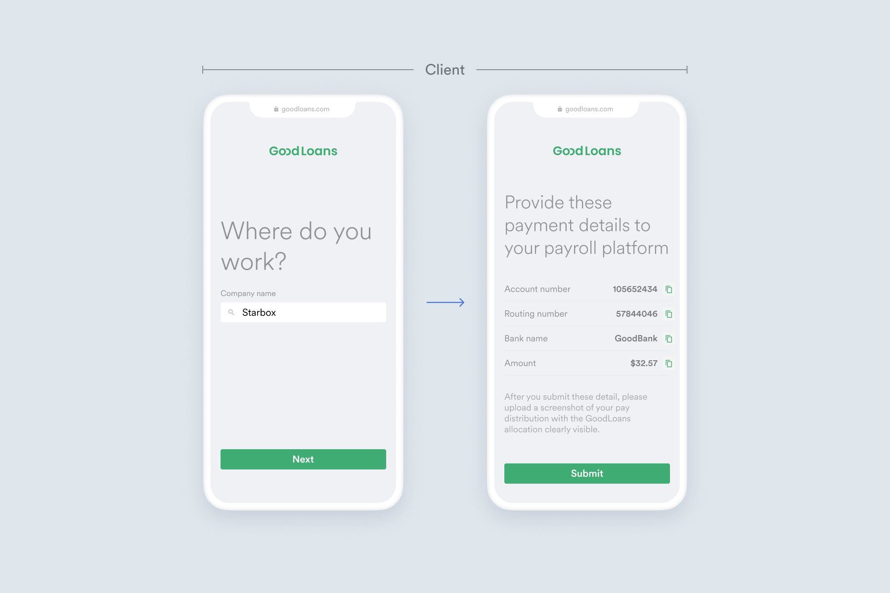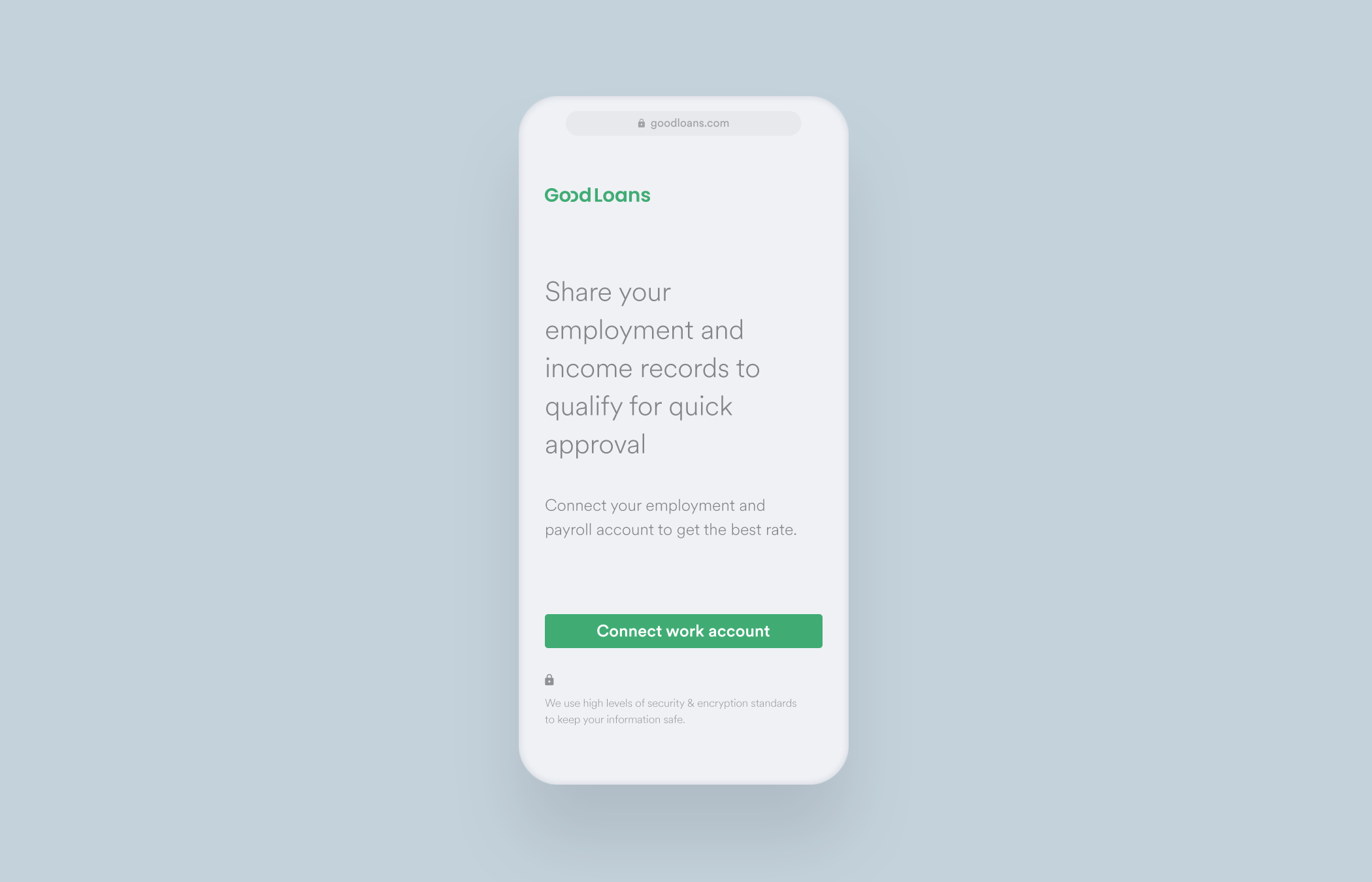 - Context - provide users with context into the process they will go through. Users need to understand that they will 1) search for their employer, and 2) connect their employment or payroll account.