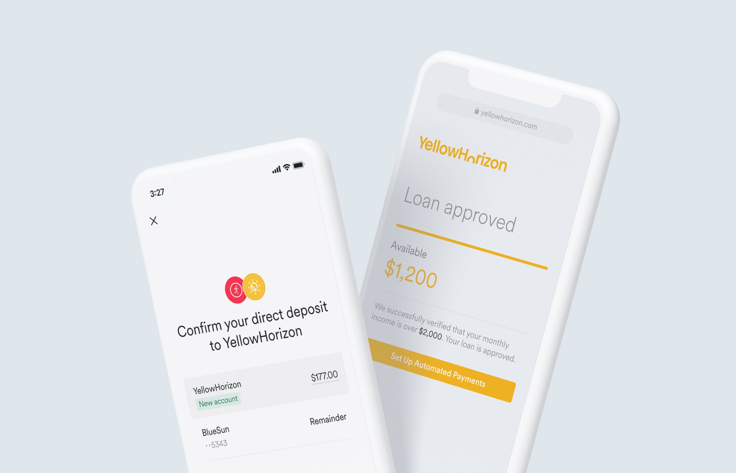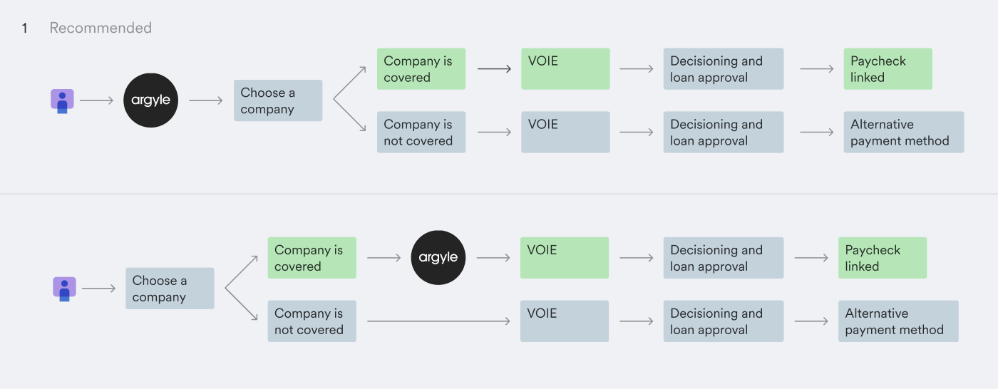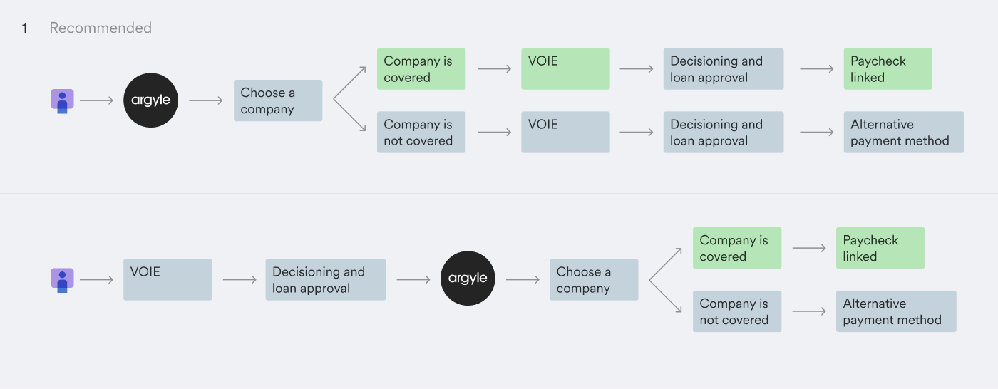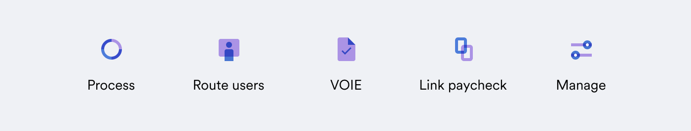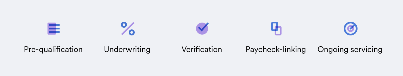 - Verify income and employment (VOIE) to make a loan decision and link a user’s paycheck (recommended).