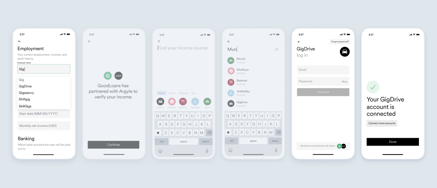 Loan App demonstrates Argyle’s ability to power verification of income and employment, deposit switching, and paycheck-linked lending solutions.Contact us or reach out to your Customer Success Manager, an Account Executive, or the Support Team for more details on Loan App or getting started with Argyle.